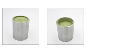 比如上圖左是樹脂粉末的松裝比重為0.4克/立方厘米,上圖右為樹脂粉末的震實比重為0.48克/立方厘米。由此可見有些粉末的震實密度會變化很大。