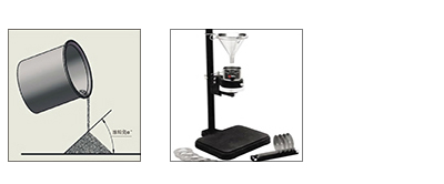 粉末的流動性可以用堆粉角來表示(上圖左),也可以用標準測流動性的儀器來計量(上圖右)。流動性不好(堆粉角大于40°)的粉末因為粉體表面摩擦力大造成混合難度。但是也有好處,是一旦混合均勻了就不易出現混合的二次偏析、分層現象。流動性好的粉末(堆粉角小于30°),因為其粉體“光滑”很容易實現混合均勻,混合時間短效率高。不能忽視事物的另一面,就是流動性過好的粉末在混合均勻后的下料、運輸中會產生新的偏析、分層現象。