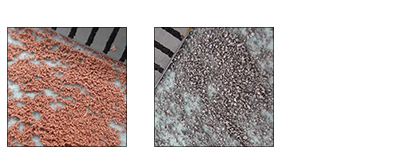 比如上圖左是20目的結晶鹽顆粒,在混合工藝中容易滯留于容器底部,上圖右是2000目的顏料粉末,在混合時容易漂浮于物料上方,不易混合。