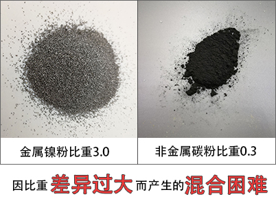 2、比如比重大的粉體與比重輕的粉體一起混合,混合均勻也很困難。