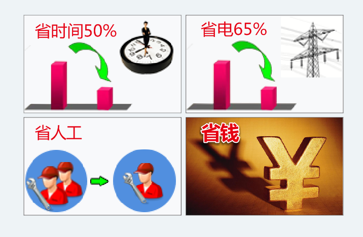 因此雙運動混合機比傳統混合機節省時間60%。