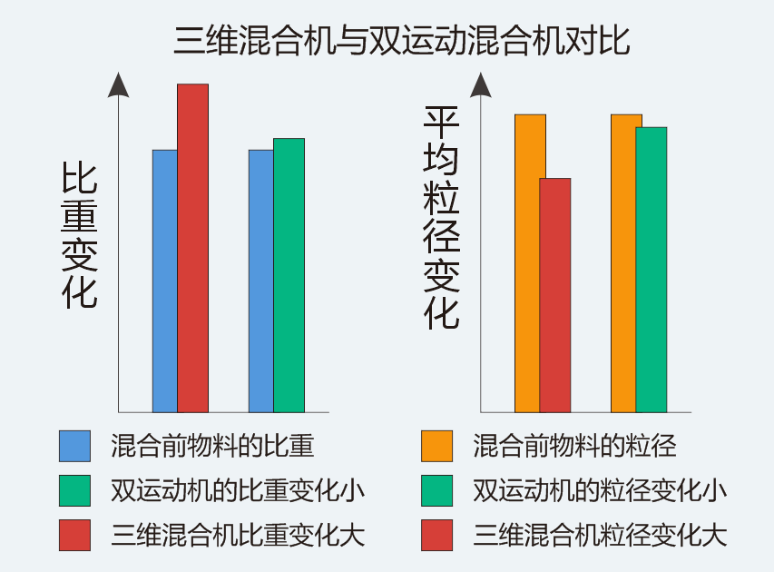 左圖是通過測量物料的比重和平均粒徑來觀察粉體在混合以后其外貌形狀的變化。